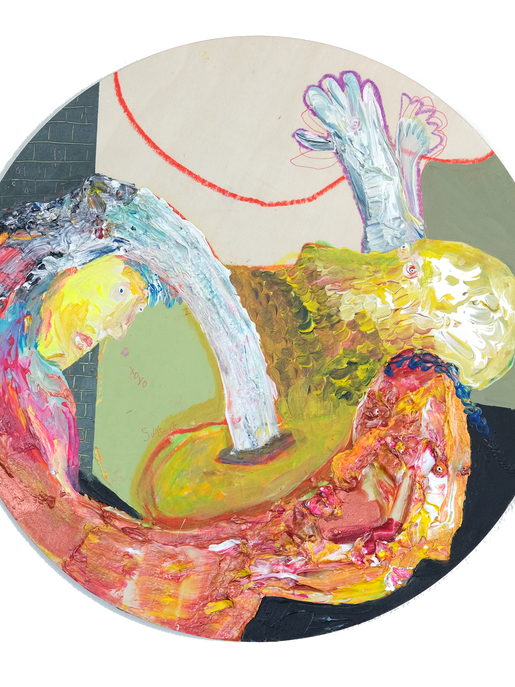 Yoonjung Lee’s sculptural paintings serve as a narrative exploration of mental health, self-acceptance, and the fluidity of identity. By layering acrylic paint to craft scenes reminiscent of realistic fairy tales, she balances spontaneity with intention—molding base forms with her hands before refining them with sharp tools. Subtle, cryptic inscriptions are embedded within her work, resembling whispered fragments of an overheard conversation. These layered elements invite curiosity, leading the viewer through an introspective journey where perception and reality blur. Figures within her paintings extend their hands, tempting engagement, yet leaving the question—should one reach back?